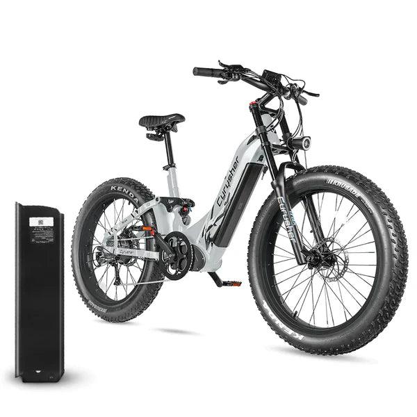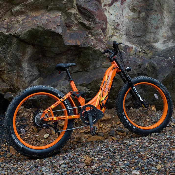 Our Cyrusher Trax is the perfect balance between accessibility and power: a step-through frame, fat tires, and 250W Bafang motor mean that there’s no terrain this bike can’t conquer.