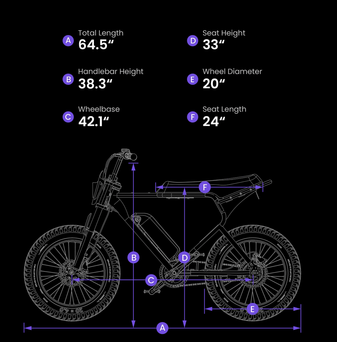 Tires: 20″ × 4.0″ fat tires