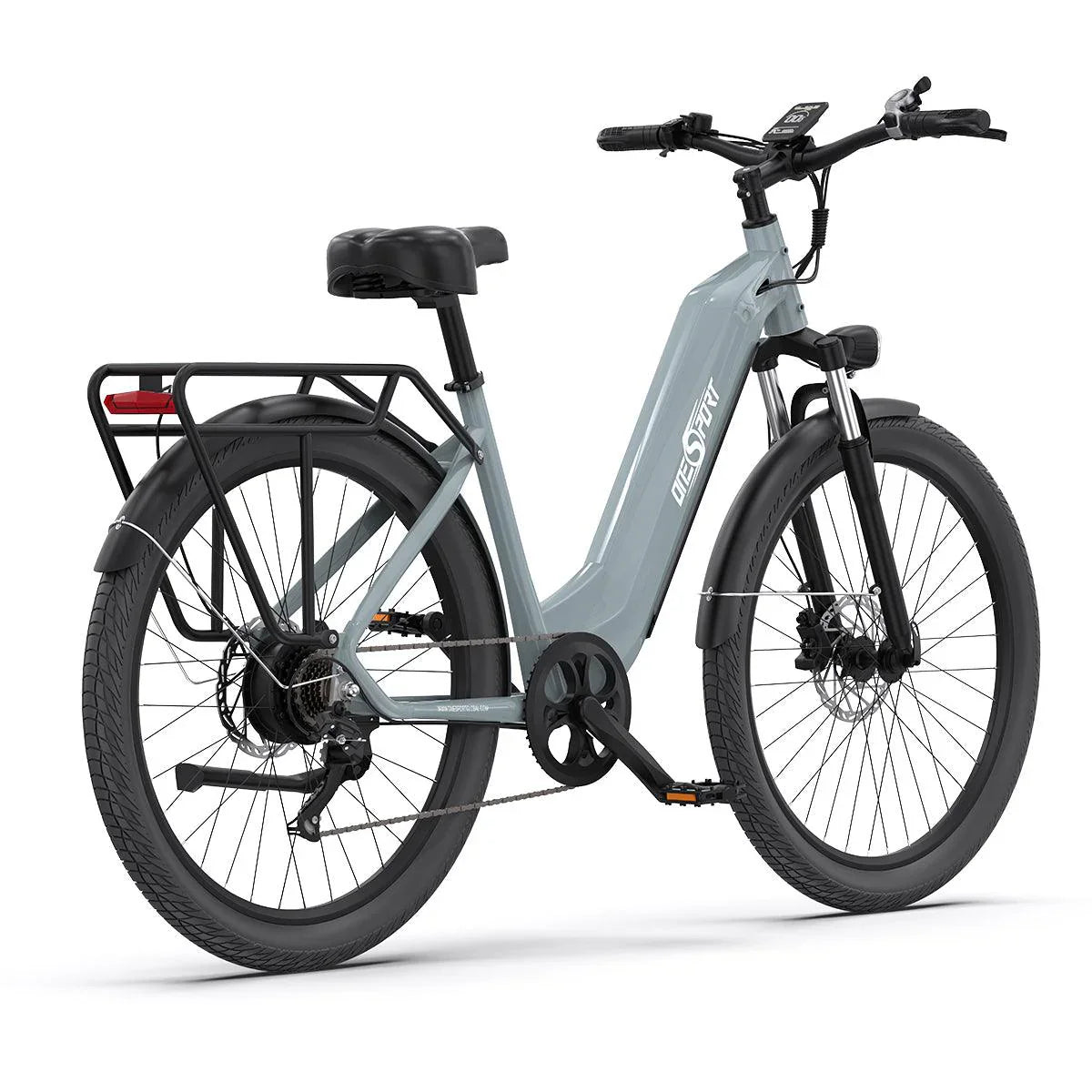 OT05 E-bike comes with a rear rack, offering convenient storage for personal items or cargo, enhancing its utility for commuting, shopping, or leisurely outings.
