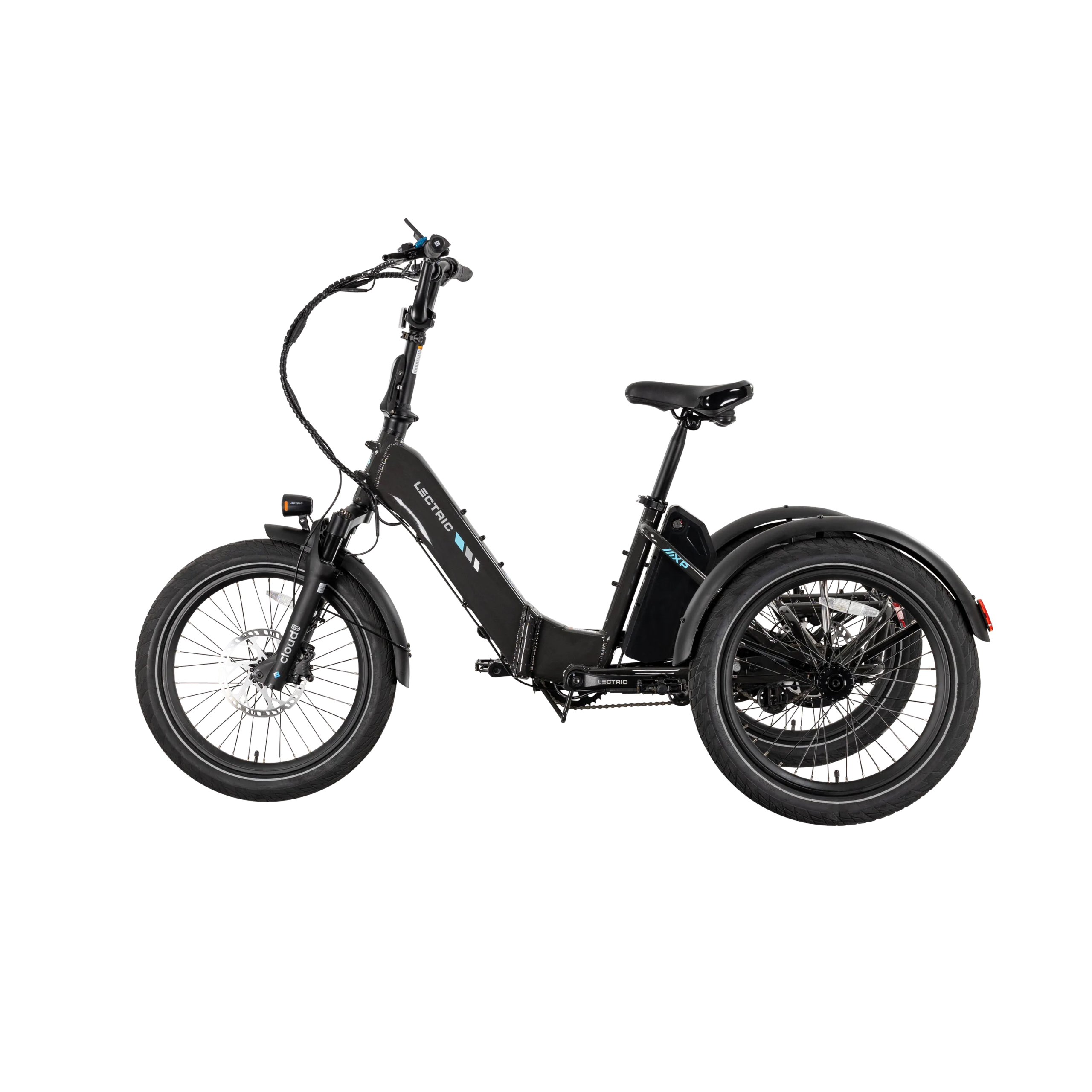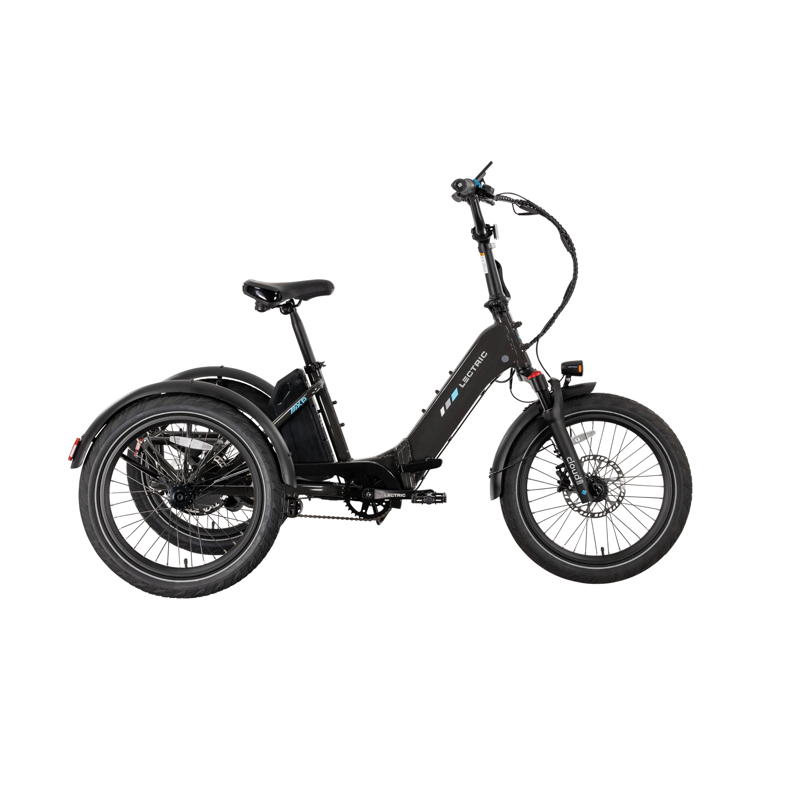 The Lectric XP Trike2 is freedom on three wheels! It accommodates a wide range of rider abilities and preferences with our lowest standover height ever of just 13.8 inches. Capable, comfortable, and completely foldable, the XP Trike2 is the best-selling electric trike in America. Now available in six new color options, the updated hydroformed frame has been redesigned with comfort and convenience in mind. Featuring our new Cloud 50 suspension fork for a smoother ride, a 9-degree stem position for improved posture, and an adjusted seating position for more stability. This ride is big on fun and easy on the joints!